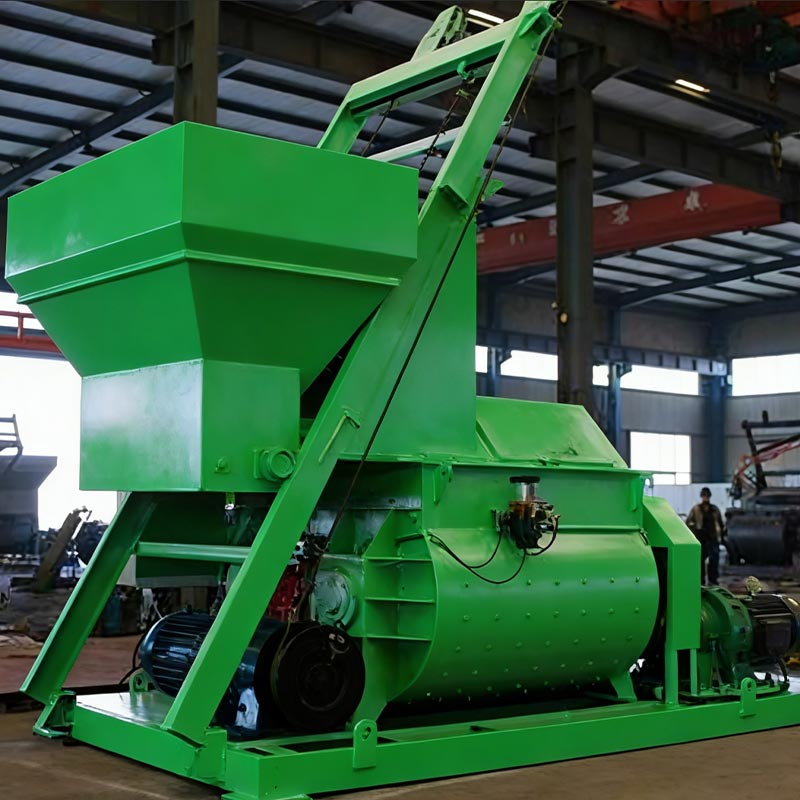Twin-Shaft (JS): Apresenta dois eixos horizontais contra-rotativos, proporcionando velocidades de mistura rápidas (45–60 segundos por lote), excelente homogeneidade e alta eficiência.